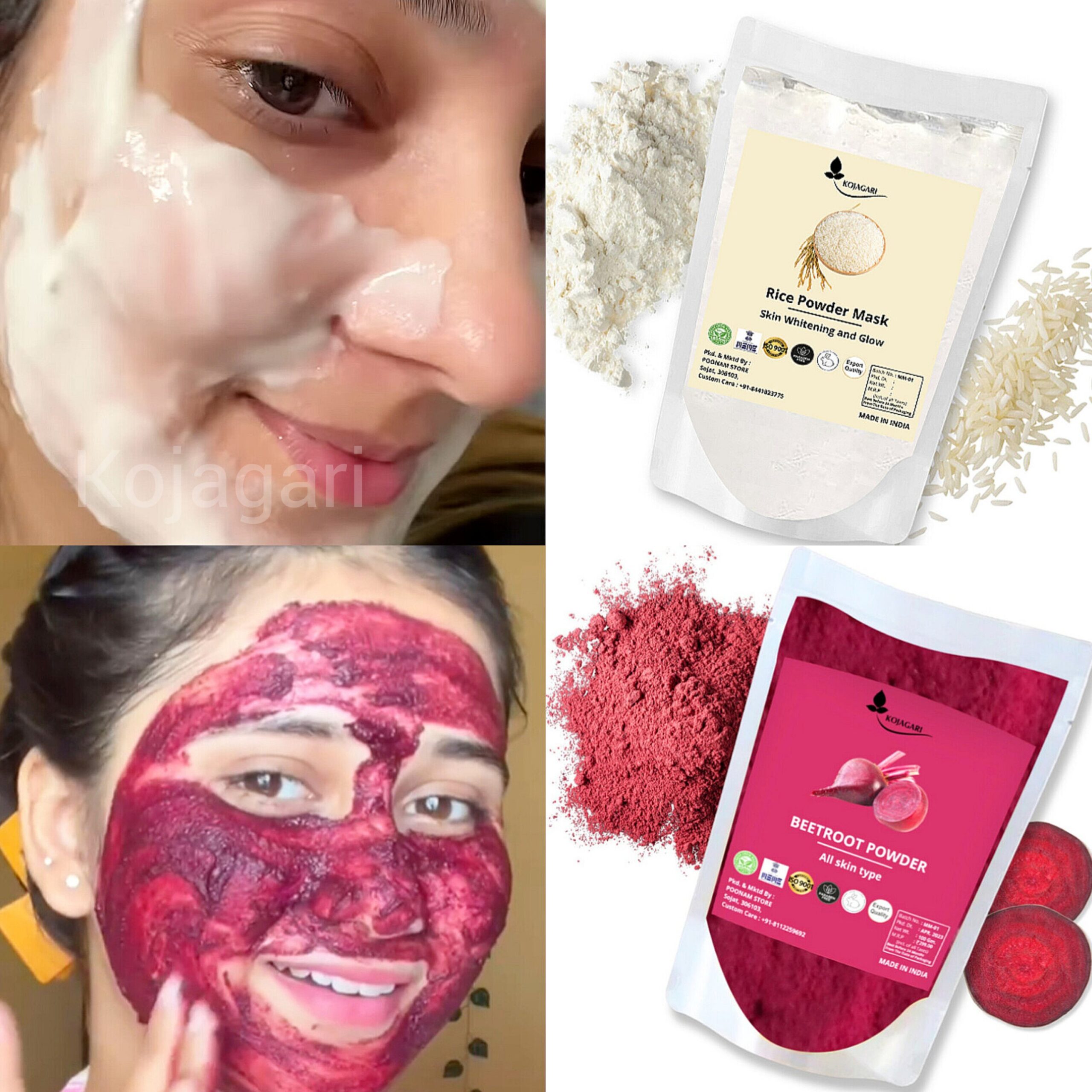 KOJAGARI Beetroot + Rice Powder (pack of 2) | Reduce Acne, Darkspots, Tanning | Brightening and Glowing | Combo Face pack |